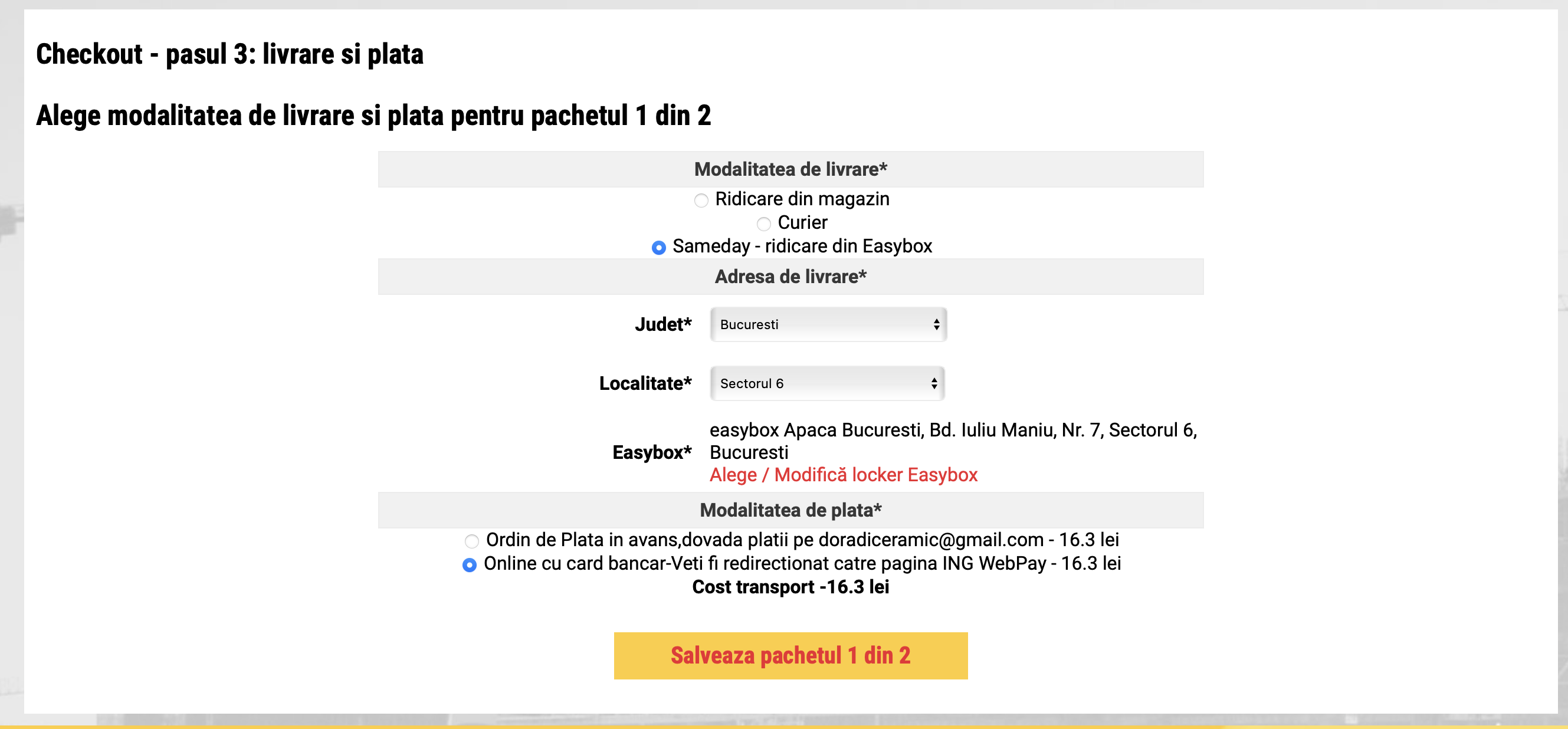 -pasul 3 =livrare si plata pachetul 1 la care s-a ales Easybox: