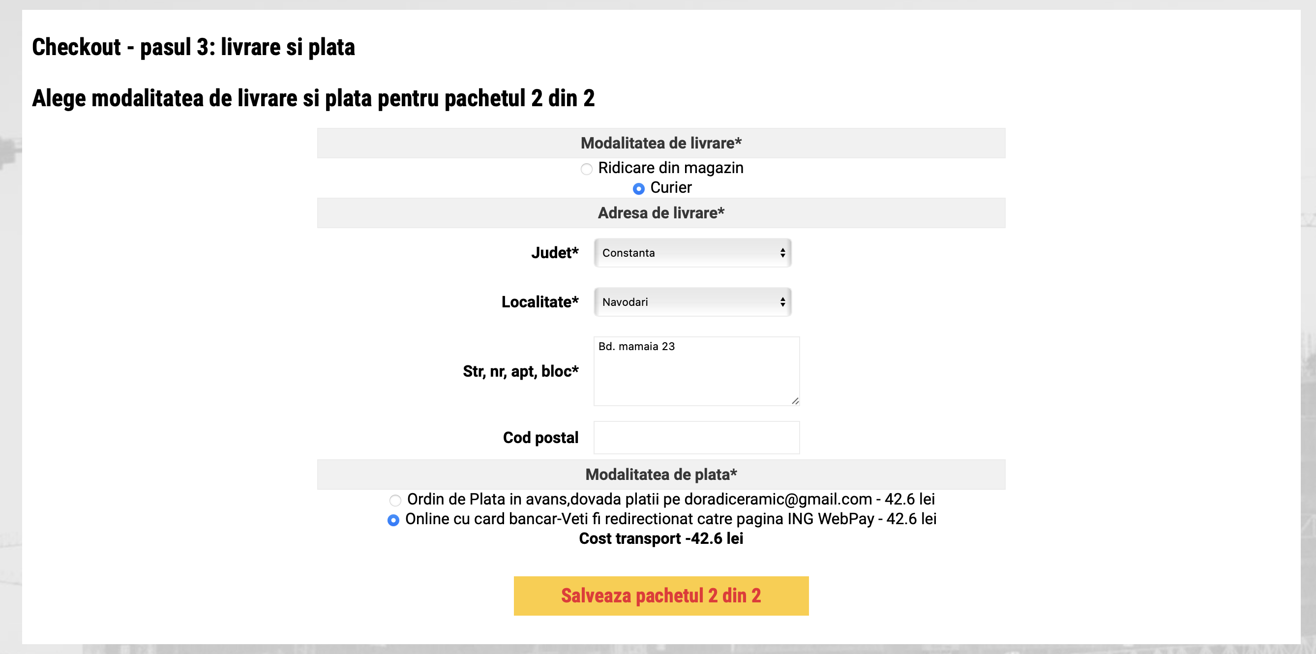 - se alege modalitatea de plata pentru pachetul 2: