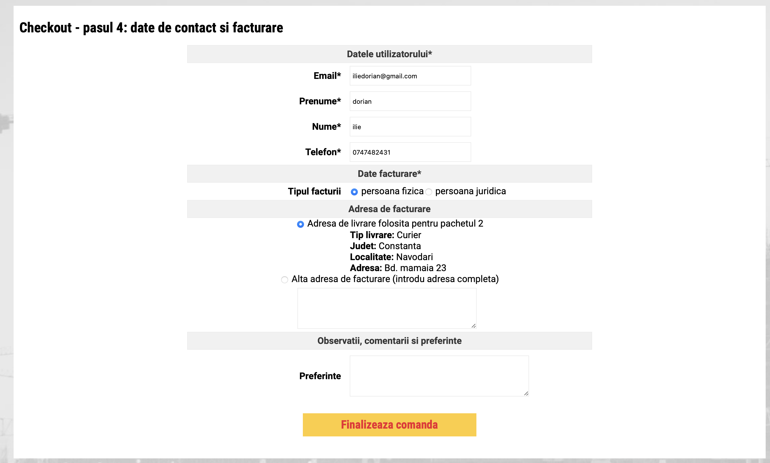 - se intra in secventa de completare date de contact si de facturare :