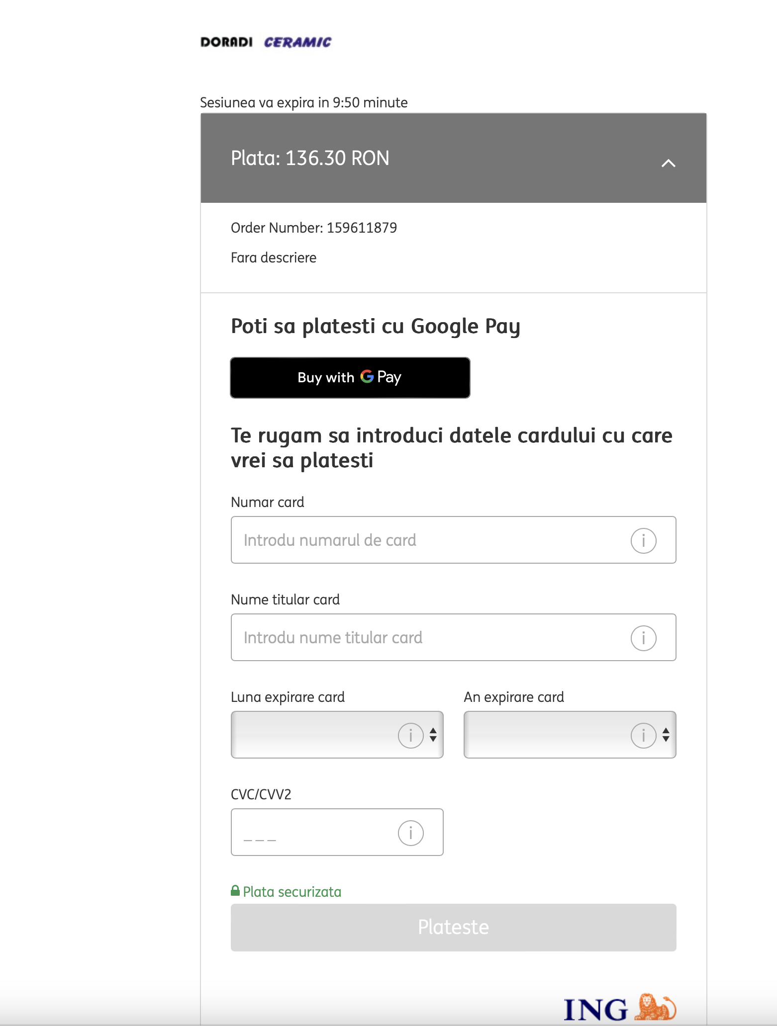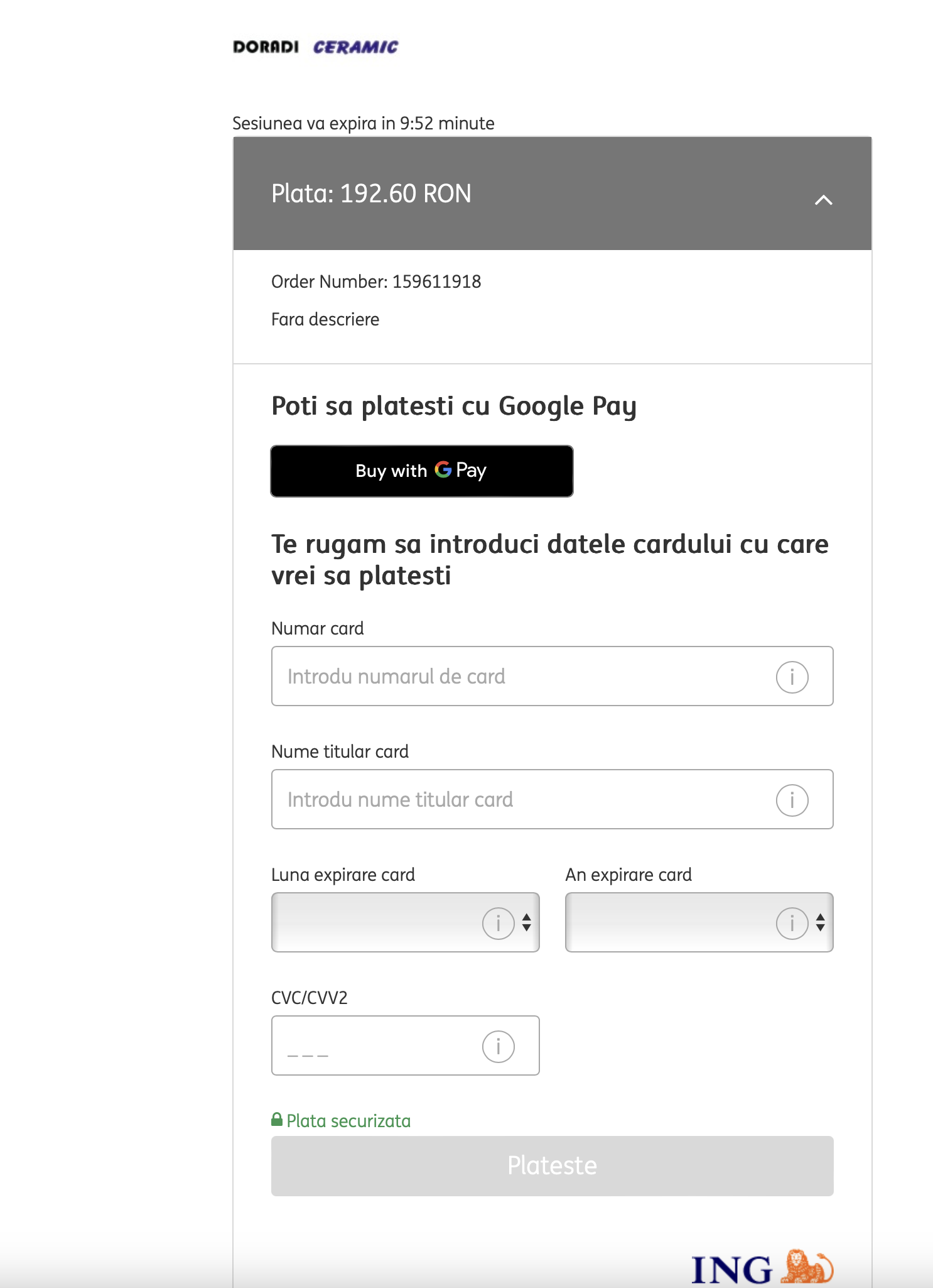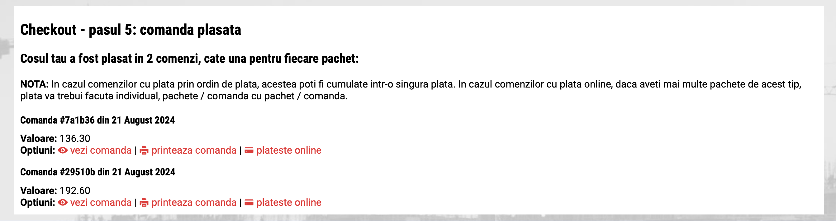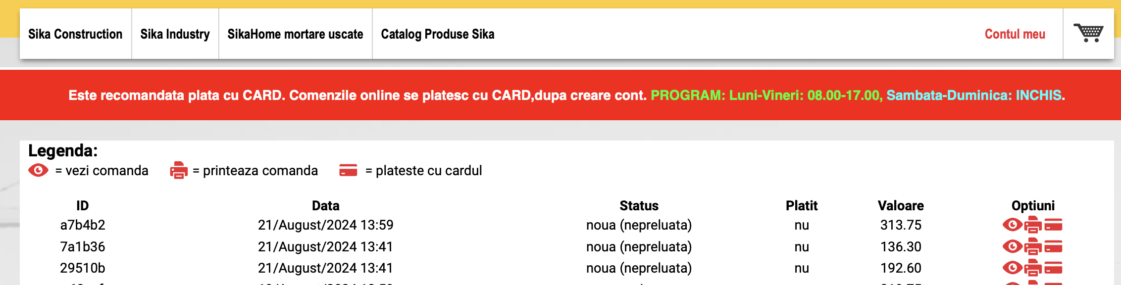 - in dreptul comenzii dati click pe iconita CARD si se intra in fereastra de plata cu card pentru acea comanda: