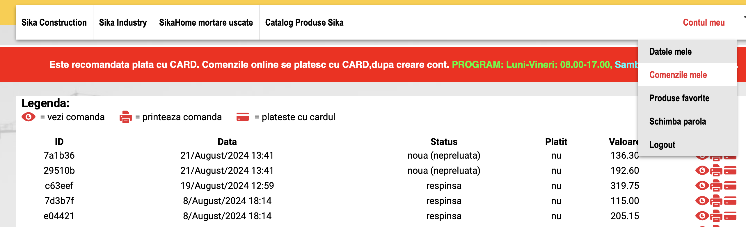 - intrati in Contul meu la Comenzi :