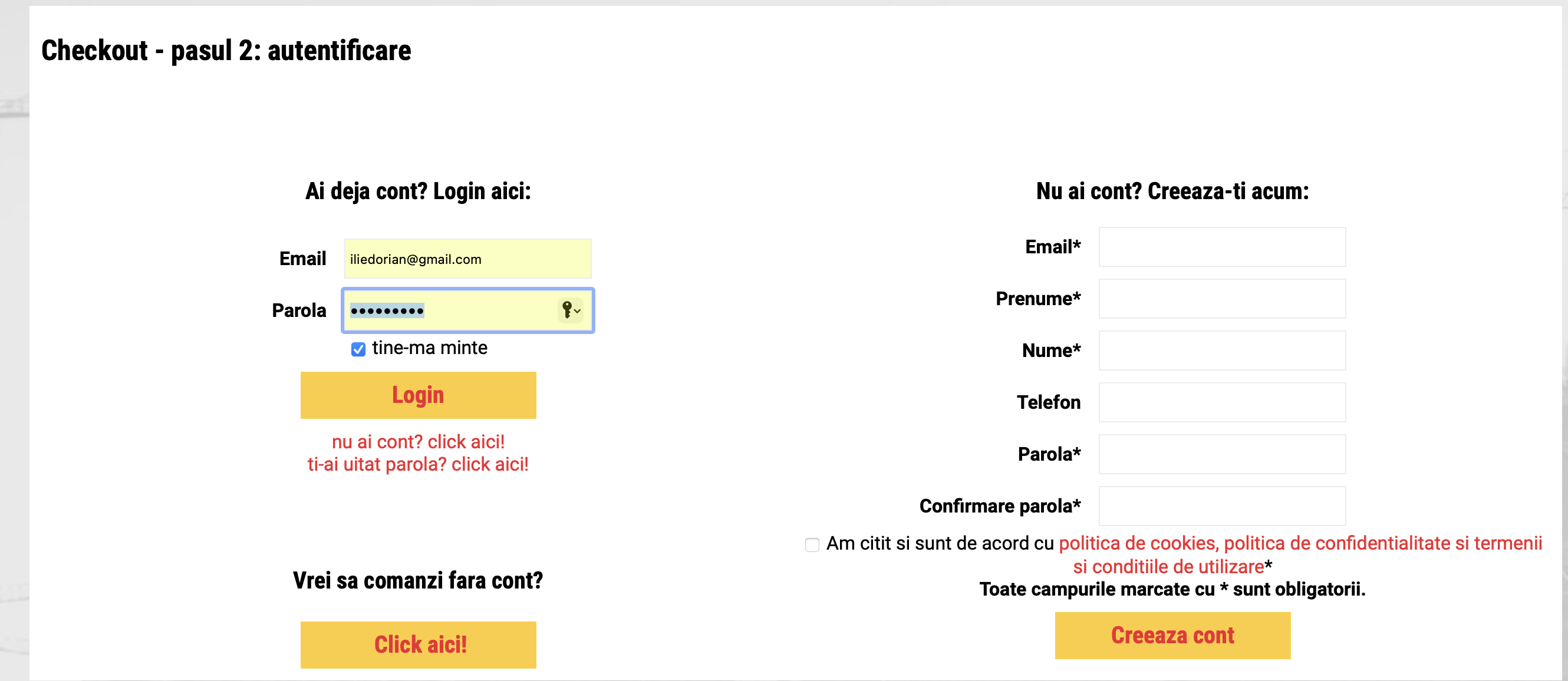 -pasul 2= autentificare sau creare cont pentru a putea plati cu card: